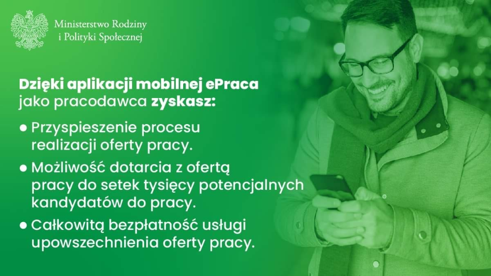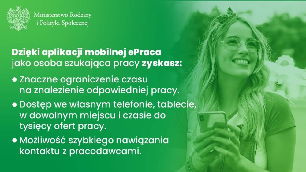 Szukasz pracy? Dzięki nowoczesnej aplikacji ePraca znajdziesz ją szybciej i łatwiej! Uzyskasz bezpłatny dostęp do informacji o tysiącach ofert z całej Polski, targach i giełdach pracy oraz innych wydarzeniach organizowanych przez urzędy pracy.